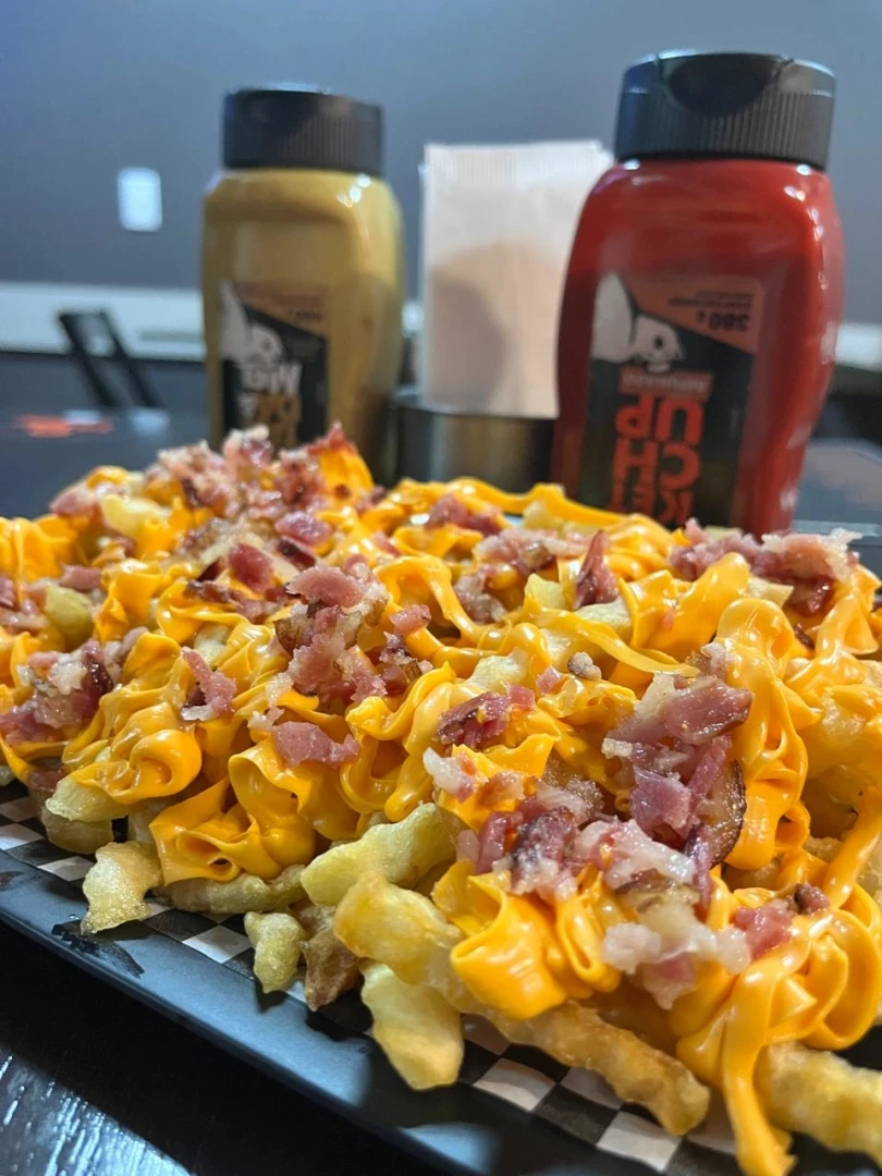 Porção de 500g de batata crinkle frita com delicioso molho especial e bacon picadinhos, acompanhado com molho da sua preferência.